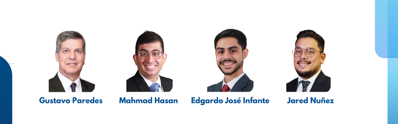 Nos complace anunciar la incorporación de los abogados Gustavo Paredes, Mahmad Daud Hasan, Jared Núñez y Edgardo José Infante, profesionales que amplían nuestras capacidades en Derecho Penal, Derecho Económico-Regulatorio, Litigios Civiles y Derecho Laboral y Administrativo.